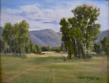 Old Cottonwood trees encroach on the hay fields on the valley floor.