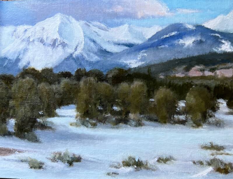 The colors of the Pinon, Cedar trees, sagebrush and rabbit brush all come together to set the stage for the palate of the American South West. The white of the snow just sets off the whole scene!